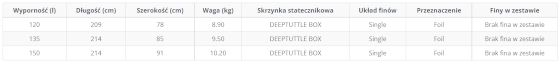 Rozmiar 120 to raczej krótka i bardzo energiczna deska, która za sprawą tych cech zachęca do spędzania z nią czasu na wodzie. Dotrzesz z nią do granic tejże dyscypliny. Idealna na silny wiatr, do małych żagli, czy doświadczonych riderów. Nie odczujesz jakichkolwiek ograniczeń: uwolnij swój rozum, bądź kreatywny, a ten kształt pozwoli na wszystko czego zapragniesz. Porównując ją do dużych desek wyraźnie widać to, że to deska z wąskim konturem, która gwarantuje bardziej zbilansowaną postawę i niezmiernie responsywną frajdę!
