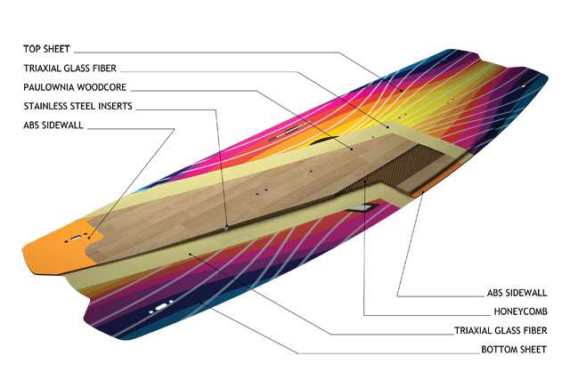 Model na sezon 2012 został wyposażony w takie rozwiązania jak możliwość ustawienia kąta mocowania oraz unikalny system amortyzacji uderzenia przy lądowaniach. Specjalnie zaprojektowana komory powietrzne chwilowo odkształcają się przy uderzeniu o wodę i pochłaniają część energii, odciążając kolana i kręgosłup użytkownika. |