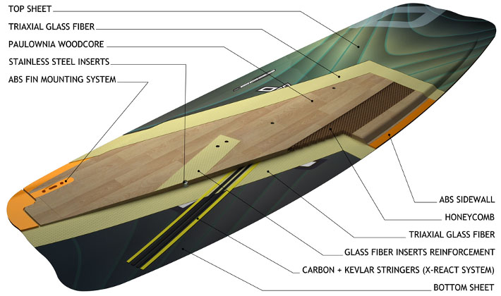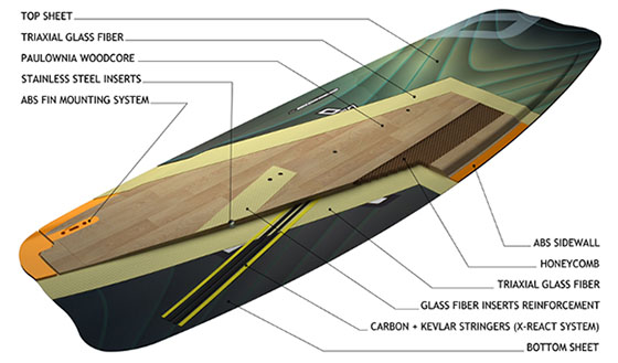 WOODCORE - Nie ma lepszego materiału na rdzeń deski niż drewno, które oferuje doskonałe proporcje pomiędzy wagą a sprężystością i tłumieniem drgań. We wszystkich naszych deskach rdzeń zbudowany jest z lekkiego drewna egzotycznego. |