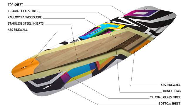 Model na sezon 2012 został wyposażony w takie rozwiązania jak możliwość ustawienia kąta mocowania oraz unikalny system amortyzacji uderzenia przy lądowaniach. Specjalnie zaprojektowana komory powietrzne chwilowo odkształcają się przy uderzeniu o wodę i pochłaniają część energii, odciążając kolana i kręgosłup użytkownika. |