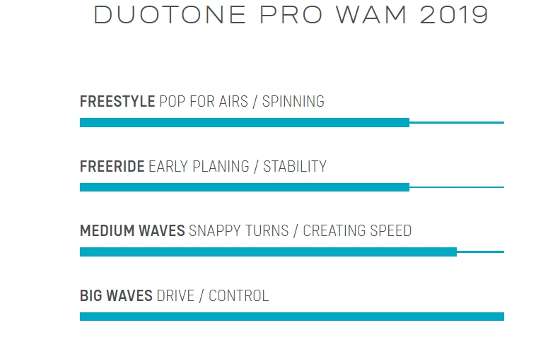 Pro WAM oznacza najwyższej klasy wszechstronną wydajność. Pro WAM jest nieco bardziej kompaktowy niż większość tradycyjnych desek. Jest kluczem do wyjątkowych możliwości. Charakteryzuje się doskonałą obsługą przy lekkich wiatrach i mniejszych falach, a jednocześnie zachowuje imponującą wysoką prędkość i dostarczając dużej wydajności falowej, którą uwielbiają jeźdźcy. Pro WAM sprawdzi się w większości warunków, od małych do dużych fal. Będzie to jedyna deska, którą zabrać możesz na wszystkie Twoje podróże. Subtelna pokład, zoptymalizowany rozkład padów i podwójny wklęsły pokład dopełniają jedną z najbardziej imponujących desek surfingowych w serii Duotone. W tym sezonie również wersja 5'6 dla lżejszych zawodników.