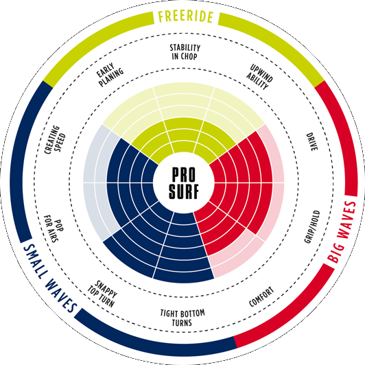 - Pro Surf przypadnie riderom szukającym deski o bardziej tradycyjnym kształcie, lecz ciągle o bardzo wysokiej wydajności. Poprzez użycie designu bardziej wyciągniętego do przodu Sky Solbach stworzył deskę, która da sobie radę w sytuacji, kiedy fale będą na