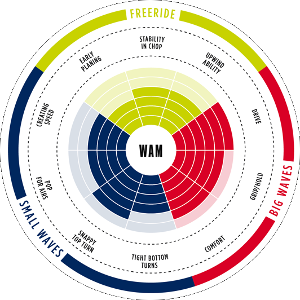 WAM to świetny all rounder, przygotowany na bardzo zróżnicowane warunki. Deska oferuje najwyższej klasy balans i kontrolę w porównaniu do desek o bardziej tradycyjnym kształcie, przez co świetnie nada się do uczenia jazdy po falach. Te cechy będą również niesamowicie ważne dla zaawansowanych riderów - bowiem umożliwi to im wykorzystanie pełnego potencjału WAM.