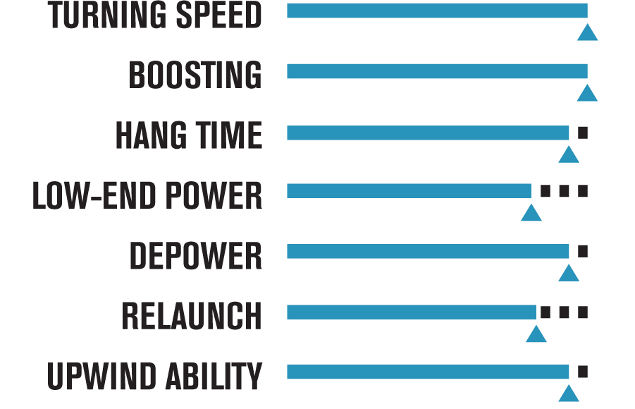 - Dużo skierowanej do przodu mocy przy kiteloop'ach