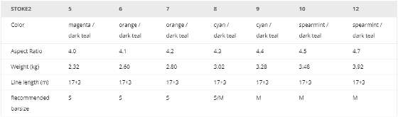 Każdy rozmiar w tym modelu został oddzielnie zaprojektowany i dostosowany do warunków w jakich ma być użyty. Dokładny, skrupulatny trimming latawca spowodował, że dane rozmiary są odpowiednie dla określonych dyscyplin. STOKE 12, 10 – freestyle, STOKE 8, 7 – megaloops, STOKE 6, 5 – wave, STOKE 9 – najbardziej wszechstronny rozmiar