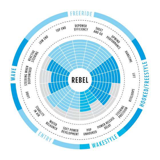 Nowe, świeże podejście do modelu Rebel - zapewnia te same doznania, przy nowych, lepszych osiągach. Ci, którzy jeszcze nie mieli okazji testować ten model informujemy, że Rebel to wyznacznik wysokiej wydajności w klasie latawców Freeride/Big Air.