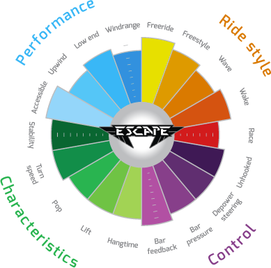 Jak twierdza konstruktorzy każda sesja powinna zapewnić świetną zabawę, podnosić umiejętności i zwiększać pewność siebie ridera, i właśnie w tym celu stworzono Escape. Latawiec ten pozwoli ci uciec przed własnymi ograniczeniami, dając ci wolność by cieszyć się każdym aspektem kiteboardingu.