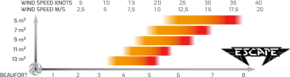 Doskonała wydajność i ogromny zakres wiatrowy Skrzydło oferuje świetną wydajność w szerokim paśmie wiatrowym. Dzięki szeregu regulacji, możemy dopasować skrzydło do własnych predyspozycji oraz aktualnie panujących warunków. Dzięki wszechstronności Escape jest doskonałym wyborem dla każdej osoby bez względu na stopień zaawansowania. Przy silnym wietrze skrzydło nabiera pazura, i pokaże na co je stać. Doświadczeni riderzy bez wątpienia wyciągną cały potencjał latawca. Natomiast przy niższych wiatrach, skrzydło zachowuje się nadal bardzo stabilnie i przewidywalne.