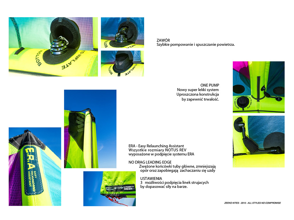 Nowy centralny, podwójny zawór do spuszczania i pompowania wyposażony w specjalną ochronę z neoprenu. Pompowanie latawca jest łatwiejsze a spuszczanie powietrza, dzięki dużej średnicy jest o wiele szybsze.