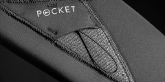 Zewnętrzna kieszeń na neopren, umieszczona na dolnej części kombinezonu.