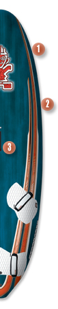 Głębokie konkawy poprawiają kontrolę i obniżają środek ciężkości deski. | ||