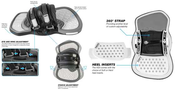 H20 to idealny wybór dla ridera, który ceni świetnie dopasowane do stopy wiązania, które jednocześnie nie krępują ruchów i nie ograniczają możliwości na wodzie. To wiązania dla amatorów stylu, jakości, osiągów, ale także pięknego wykonaniu i designu.