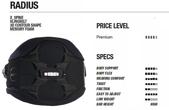 Trapez Ion Radius to doskonały produkt wykonany z dbałością o szczegóły - kontur i krawędzie trapezu wyłożone zostały miękką pianką, w celu ochrony tych kluczowych dla komfortu obszarów trapezu. Trapez ION Radius, bardzo wygodny wysoki trapez do windsurfingu. W przeciwieństwie do modelu Radium jest bardziej wąski, mniej rozbudowany i dedykowany do manewrowej jazdy Wave / Freestyle.